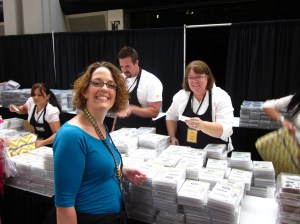 From Brian’s class we went to Karen Hauley’s “I am earning an Incentive Trip” panel. We were ALL EARS as we listened to three successful demonstrators share their tips – but before they started, Karen shared her personal “I am” story. She told us of getting that dreaded telephone call from her doctor and showed us her new favorite tee “Of course they’re FAKE; my real ones tried to KILL me”! A sense of humor is essential in life, but as Karen told us, she’s a survivor!
