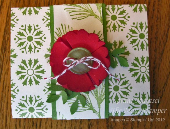 Speaking of free, Raining Flowers was one of the many free stamp sets I brought home from convention (talk about excess baggage – next year I’m bringing an extra suitcase!). It’s a Two-Step Stampin’ set, but even better, the various pieces coordinate and layer really well together. It’s almost like Stampin’ Up! MEANT TO DO THAT!! (I know. What a concept.)