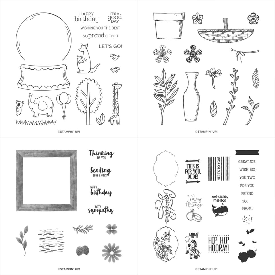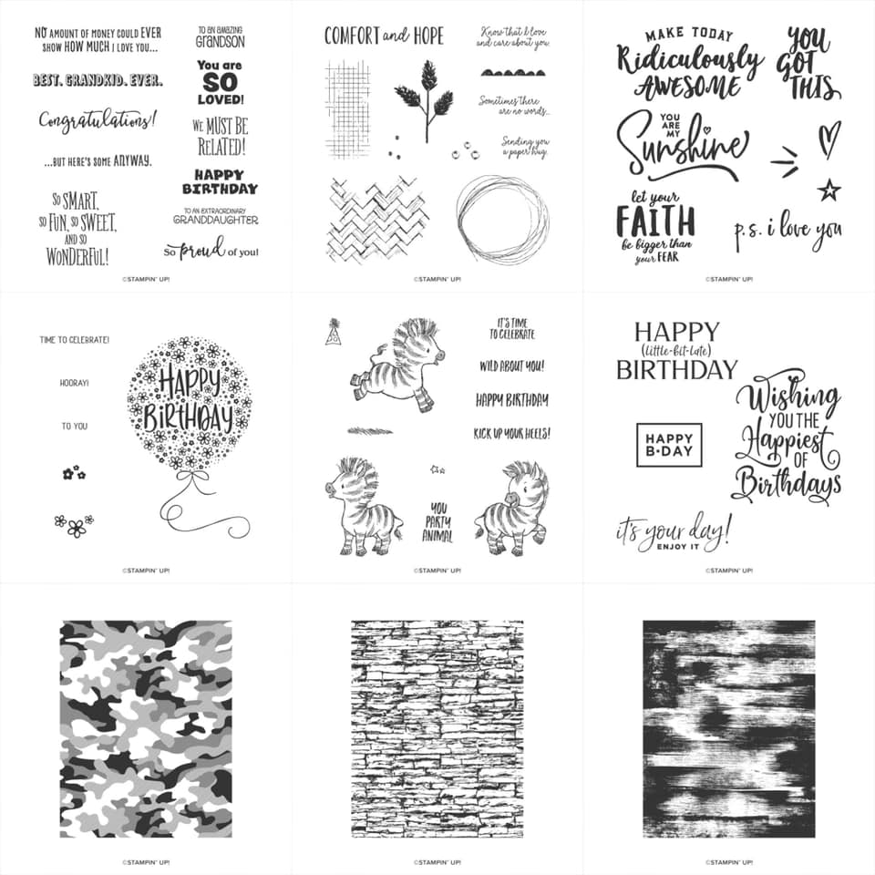 Stampin’ Friends, get ready! The One Day Stamp Sale starts at midnight tonight Mountain time – and that’s 8 pm Hawaii time! Check out all the fabulous images, words and backgrounds you can choose at 15% off!