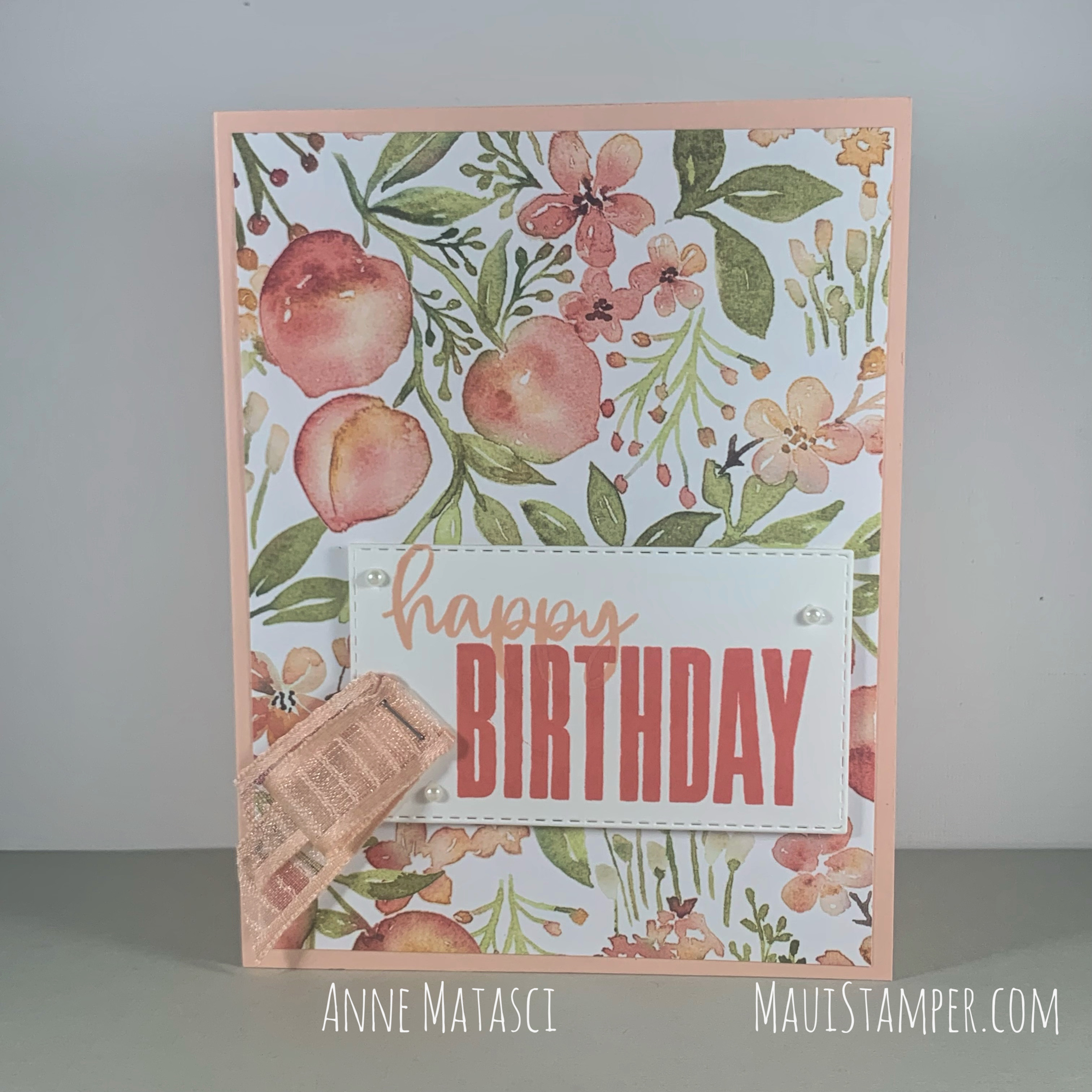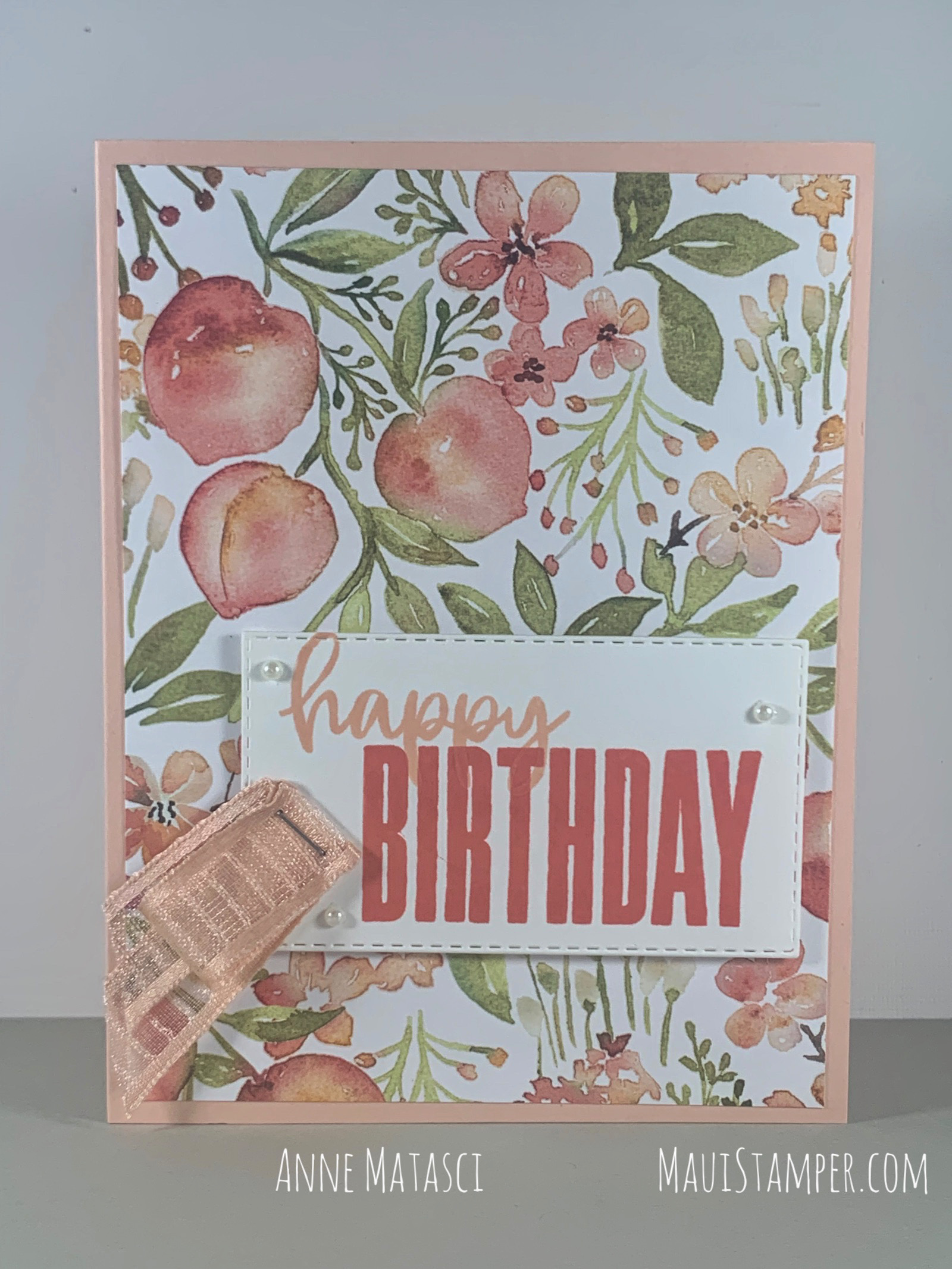 The You’re A Peach DSP is a stunner!! And it’s on sale (along with 8 other collections) through August 2nd. Every single piece of this paper is gorgeous, and the designs on the “B” side are beautiful, versatile monochromatic prints that make great accent elements on a card. It’s a perfect summertime paper, even if you choose to get it without the coordinating Sweet as a Peach bundle. (But why would you?)