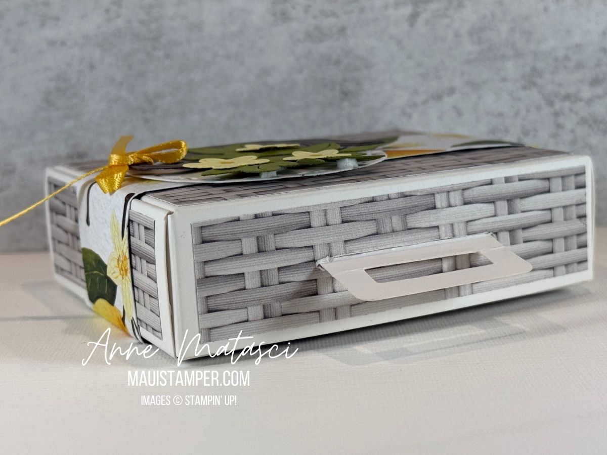 The white ribbon was transformed to Gray Granite ribbon with the magic of Stampin’ Blends. That ribbon is now on the Last Chance list (sigh) so you might want to stock up while you can.