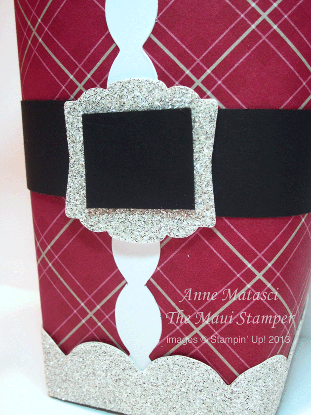 This is the “before” basket, a 2-4-6-8 basket trimmed with retired Designer Series Paper bits and pieces run through the Big Shot with the Tasteful Trim die. I had a better idea and my plan was to show you the two projects, but I had “help”:
