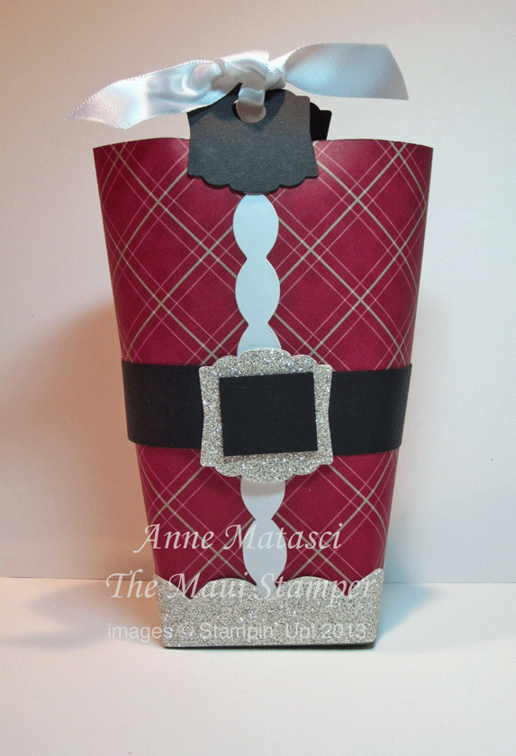 THIS is the project I was trying to photograph. I apologize for the crimped handle, but as you can imagine, I was happy to get this picture as it was. The Flourish stamp set is one of the single stamps that were available as a Sale-a-bration option, and you can see it better from the side. You realize, of course, there isn’t a photo of the side.