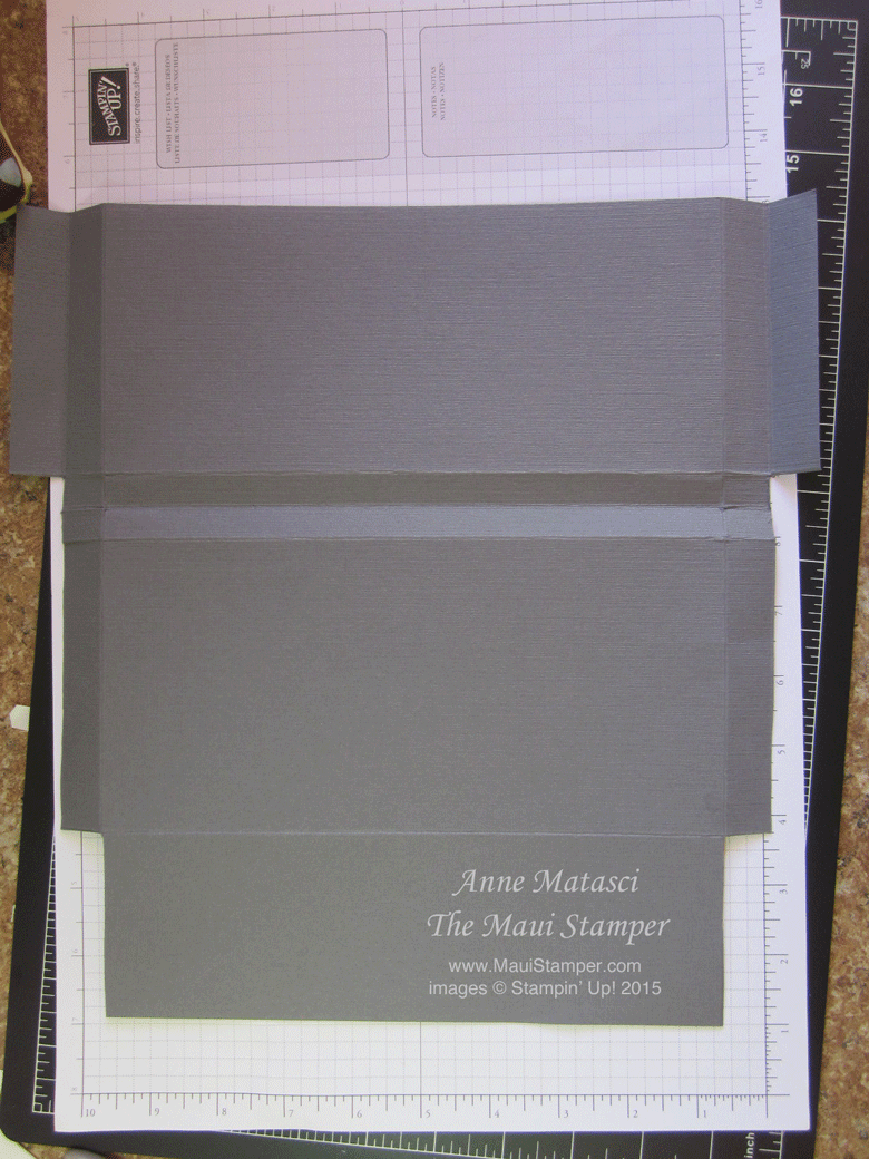 Fold gussets across the middle and on either side as indicated by the score marks. Your envelope will have a gusset along the bottom and on the sides.
