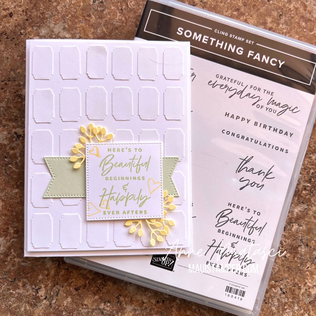- Color Palette: Basic White, Lemon Lolly, Daffodil Delight, Lost Lagoon, Pretty Peacock, Gray Granite