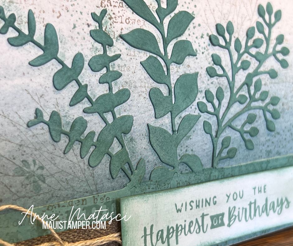 - Accessories: Stamp Cut & Emboss Machine, Country Flowers dies, Textured Floral dies, Textured Notes dies, Stampin’ Blends, Subtles DSP Pack, Jute Twine, Glue Dots, Stampin’ Dimensionals