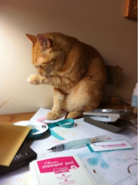My Open House is on Sunday and I have a lot to do. My husband and son are golfing, and Someone is lonesome.
