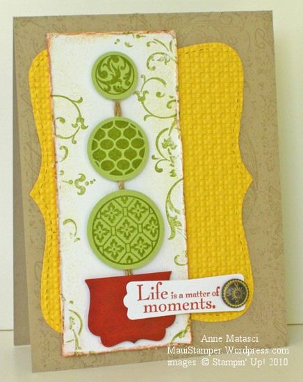 I’ve had a package of Morning Mocha Designer Series paper in my studio for ages and finally broke it open a week or so ago. What awesome papers!! They’re great for masculine cards, but I especially love the way they work with a vintage look. Those rich browns with the hint of metallic really work for me, and the images coordinate with Vintage Vogue.