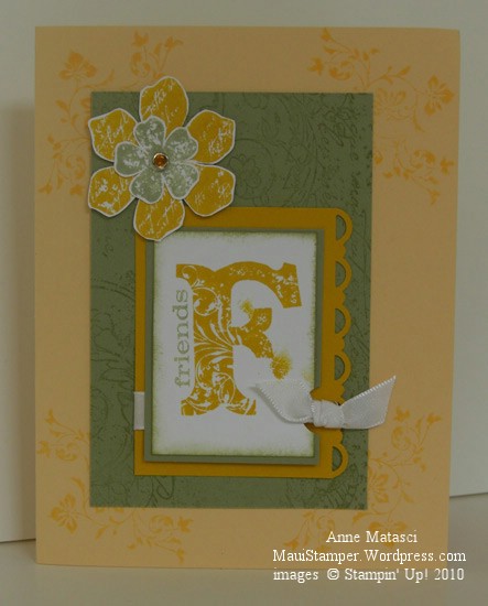 Stampin’ Up! has commited that the Vintage Vogue stamp set will be in the 2010 -2011 Idea Book and Catalog and I’ve gotta tell you, that’s good news. The more I stamp with this set the more ideas I come up with. If it’s not on your spreadsheet, workbook, or back-of-the-envelope wish list, maybe you should think about it again.