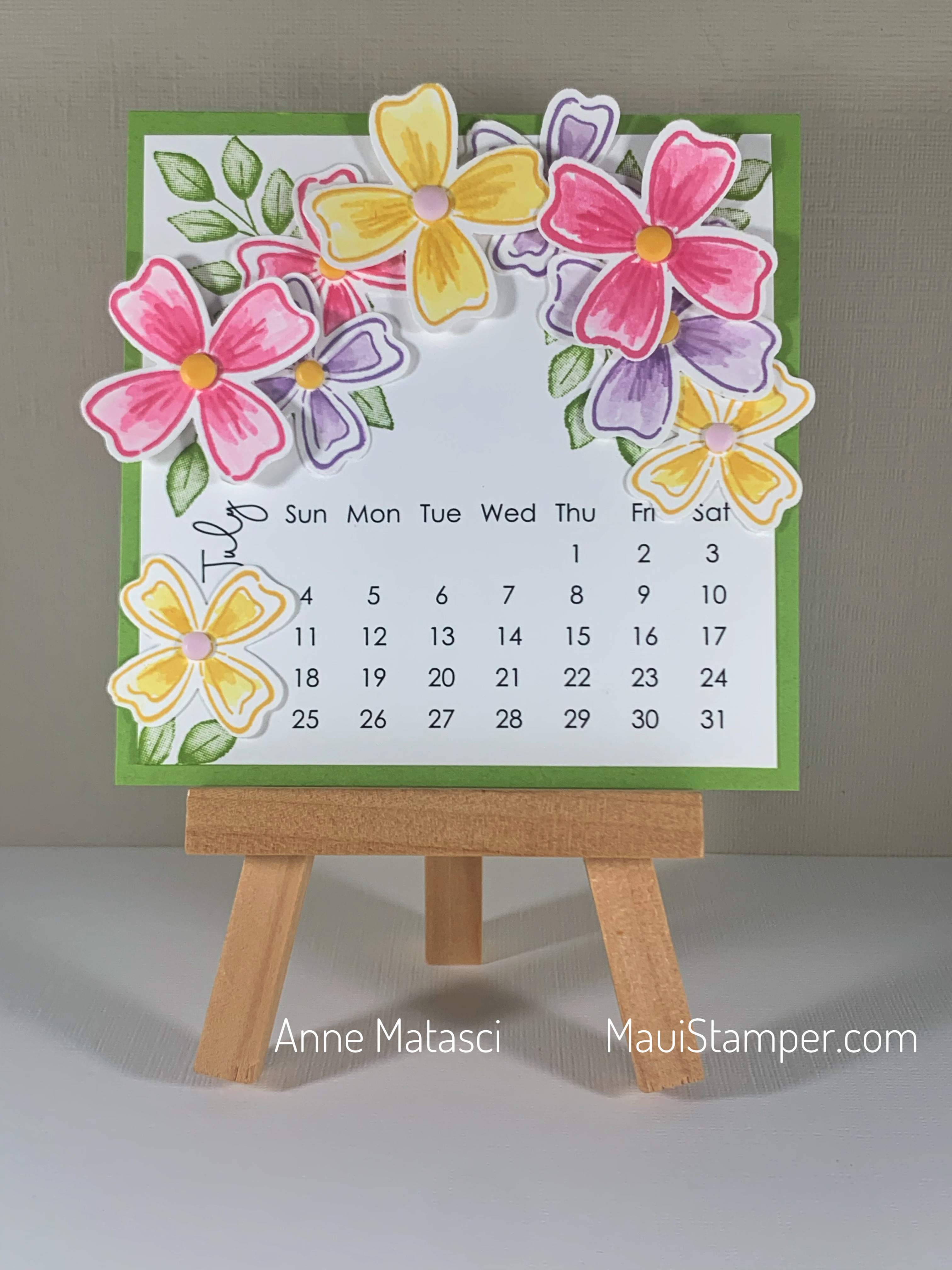 This card is a direct CASE from one of Rachel Tessman’s Mystery Stamping events. Follow the link for detailed instructions, but the basic concept is to measure halfway down the right side of the front panel of the card and cut a diagonal piece to the lower left corner. That piece is rotated up the left side of the card, forming an asymetrical card front. Measure coordinating pieces of Designer Series Paper (Fruit Salad, in this case) to layer the card front and the rotated piece. Add a sentiment panel over the assembled card front and embellish.